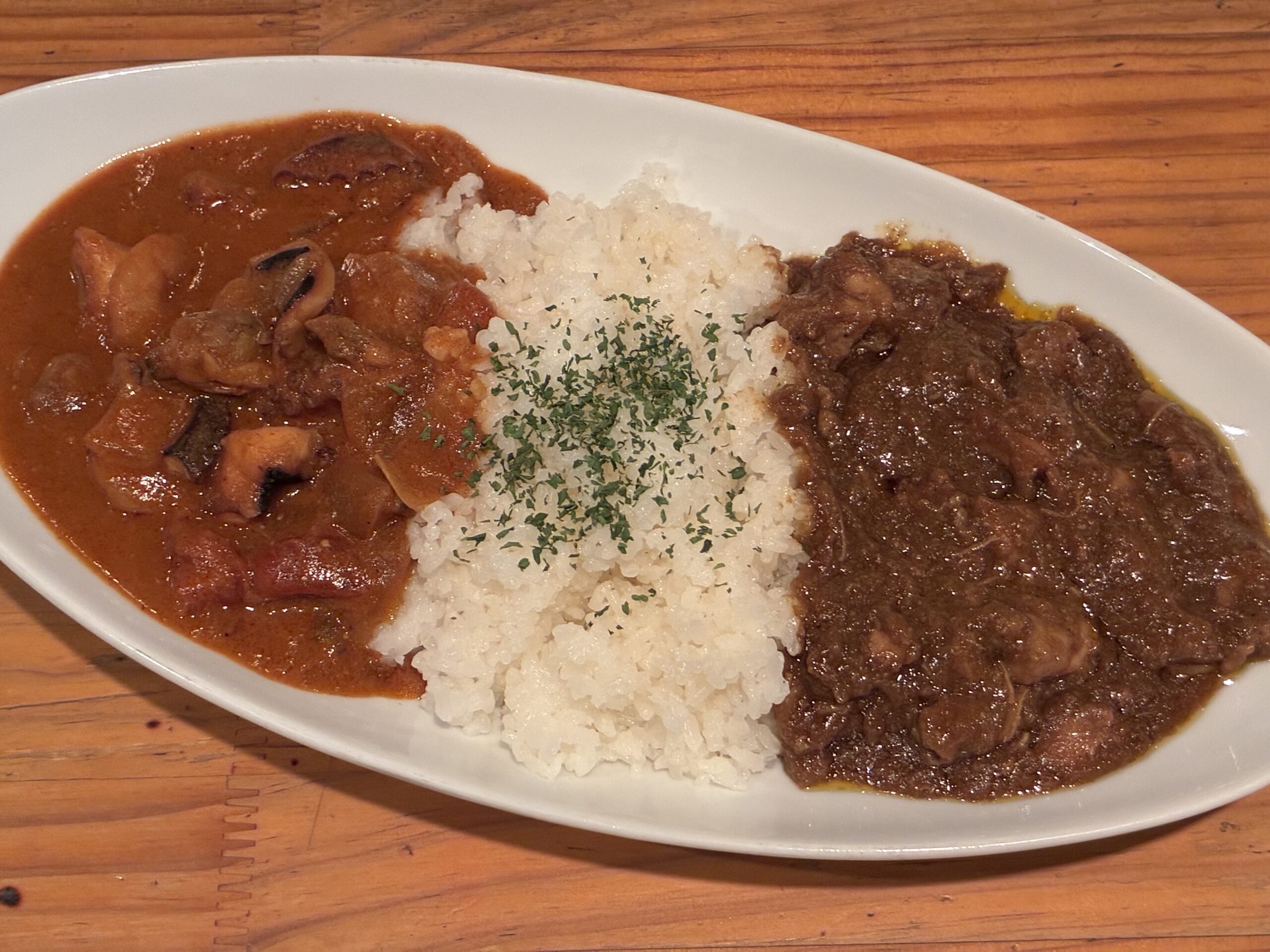 スパイスとやさしさのあいがけカレー&ふつうのカレー(1,600円)