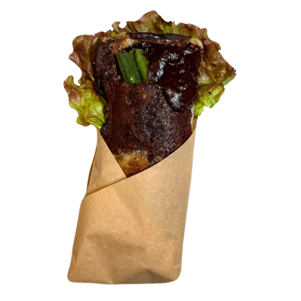 もっちり食感のライスペーパーに包まれた特製焼きカレーが堪能できる一品。1本で通常のカレーと黒カレー、ふたつの味を楽しめる贅沢なWカレーロールです。