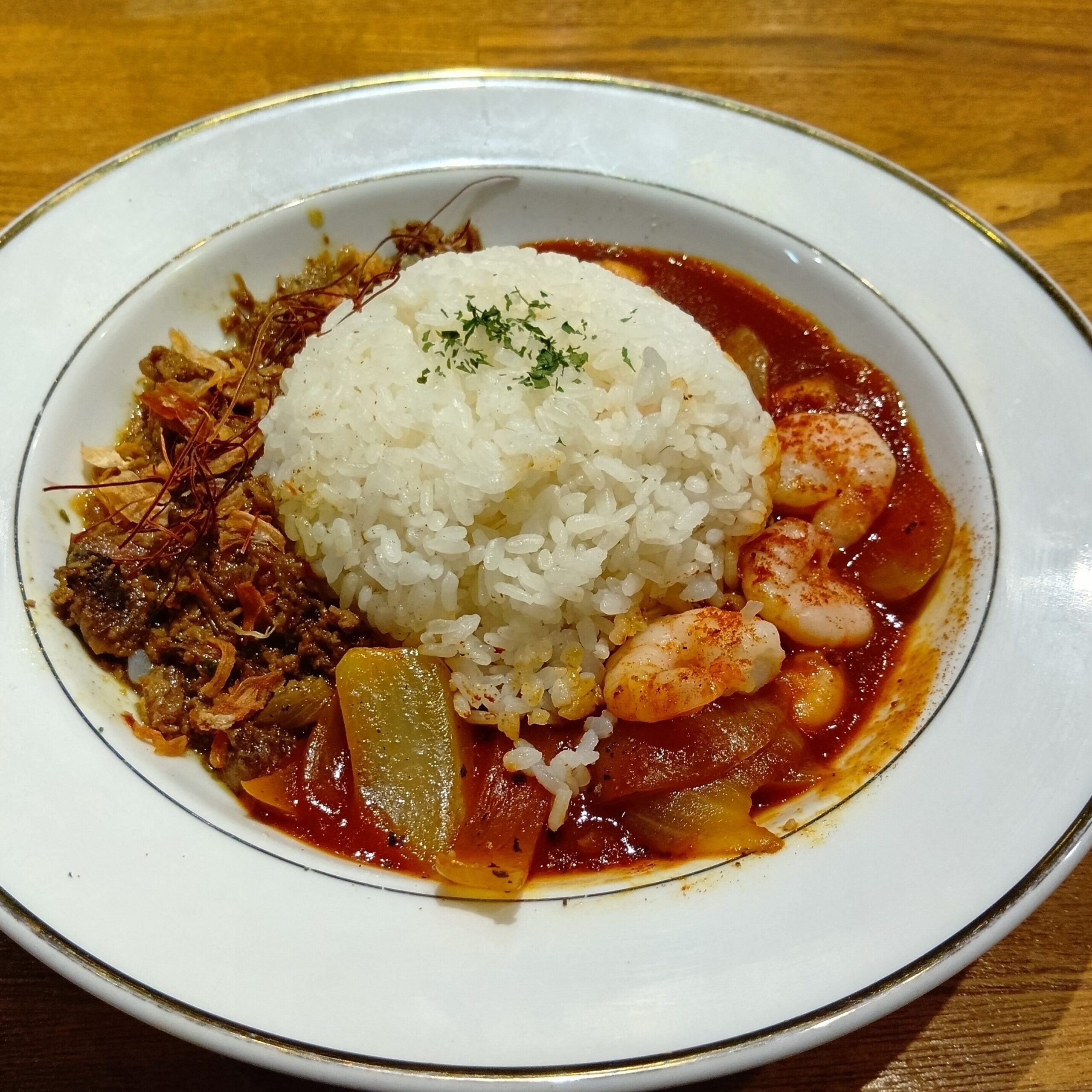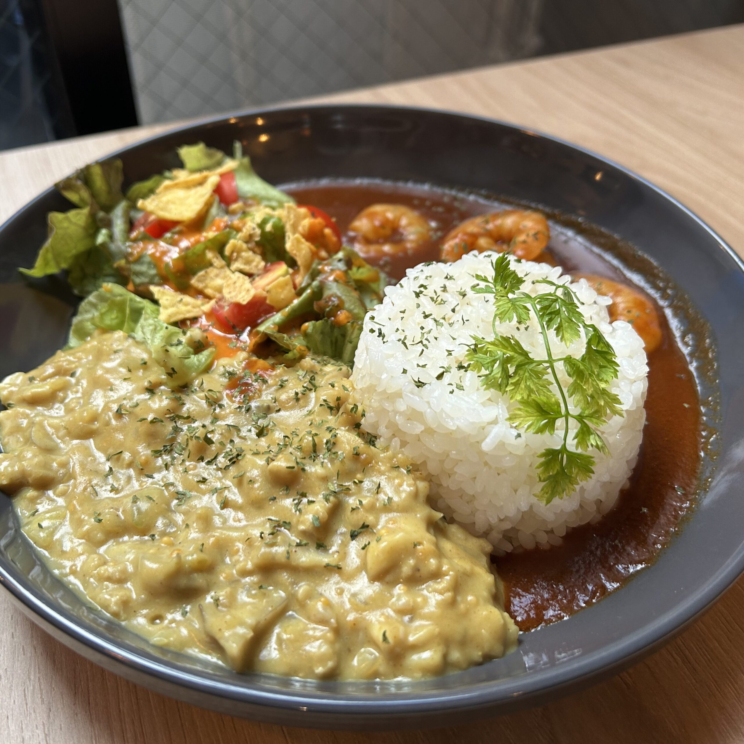 えびの旨味のハウスレッドカレーとのあいがけカレー!